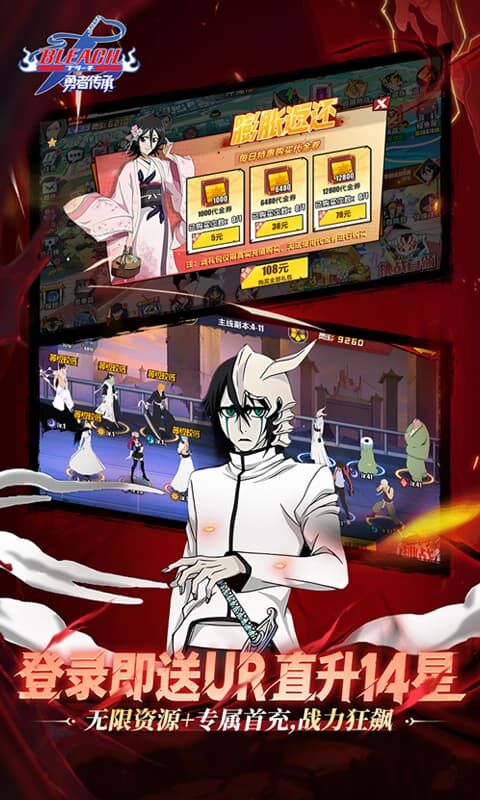 《勇者传承(0.1折送毕业阵容)》是一款以原作中的剧情脉络为核心,对人物、场景进行精细还原,对角色能力、游戏玩法进行深度定制,经典呈现玩家难以忘怀的死神世界。在游戏中,玩家以主角的身份与视角面对强敌、收集资源、磨练技巧,培养自己的最强死神。人气角色大集结,黑崎一护、朽木白哉、朽木露琪亚等数位死神人气角色登场,专属定制技能,每一位登场角色都将给你:“没错,这就是他(她)的感觉!\\\\\\\\\\\\\\\"。热血沸腾的梦幻对决到放置类游戏轻松休闲,重燃战斗之魂,体验热血酣畅的灵压对决!