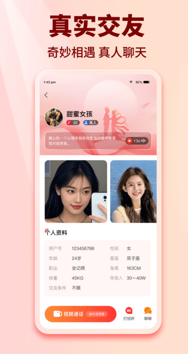 3.缘分速配:如果你在寻找那个与自己相知相守的人,那么鸳鸯视频直播免费版的缘分速配服务绝对不会让你失望。你只需要输入自己的要求,系统就会马上为你匹配出合适的对象。这个过程既快捷又准确,你完全不用担心挑剔的自己无法找到志同道合的朋友。