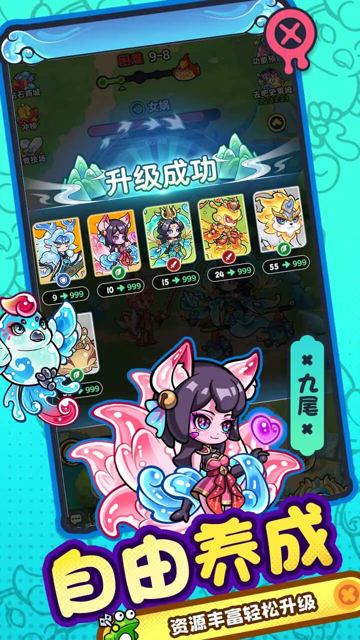 2,搭配各种角色来组建强大阵容,消灭所有的敌人。