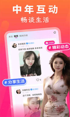 中年趣聊是一款专为中年人群设计的社交聊天软件,旨在为用户提供一个轻松、愉快的交流平台。无论用户处于何种生活状态、工作背景或性格特点,中年趣聊都致力于让每位用户在这里找到志同道合的朋友,畅所欲言,分享生活中的点滴。通过视频和语音聊天功能,用户可以随时随地与他人互动,摆脱孤独和无聊,享受社交带来的乐趣。