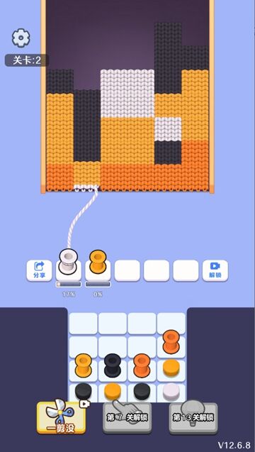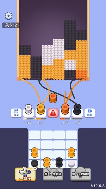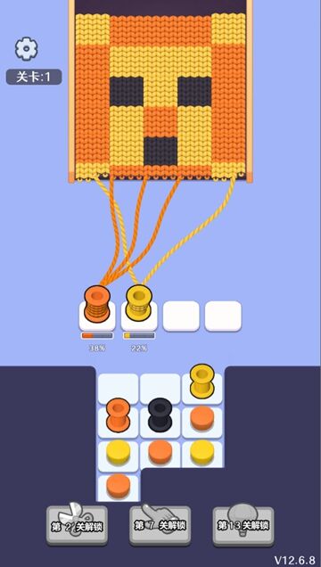 1. 画面治愈感突出,采用低饱和度柔和色调与圆润毛线团设计,避免视觉刺激,长时间游玩也不易疲劳。