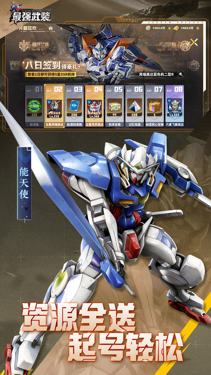 登录即可获得限定机体【无限正义高达】,通关活动收集幸运石,还可兑换终极目标——SSR+【强袭自由高达】!