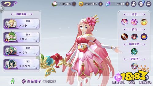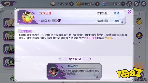 百花仙子可以说是专为多人战场打造的缘神,所谓一寸长一寸强。百花不仅技能打得远,二技能花粉炮的炮弹飞得越远伤害越高!简直就是轮回诀中的意大利炮有木有!一技能远山芙蓉是发射花朵,飞到一定距离之后会开出三朵花继续飞,打到敌人能减速。三技能步步生莲是她的灵魂技,自身开花坐下来之后可以持续回血,并且一二技能10秒里几乎相当于无限释放。