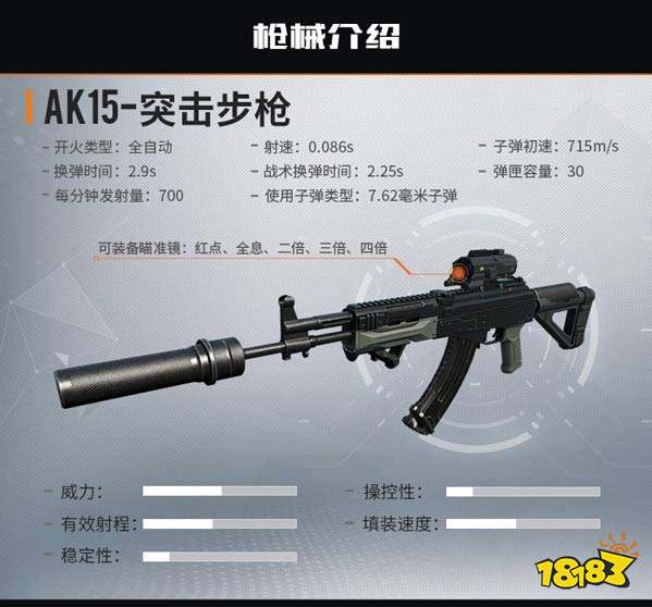 便携自动武器,威力较大,后坐力、操作难度适中,个别枪械需要一定练习才能熟练使用,是一种适用于大部分情况的枪械。