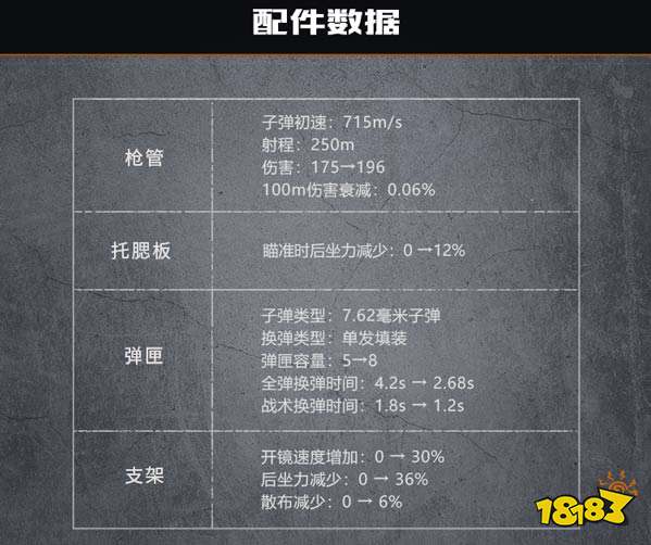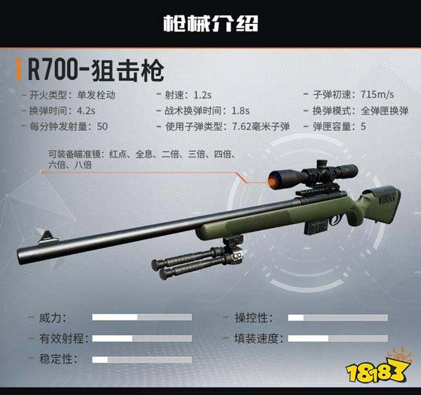 射击精度高,射程远,单发威力强的专用步枪。拥有最高的单发伤害和射程,缺点为弹匣容量较小,更换弹匣速度较慢,射速较慢,不太适合持续输出