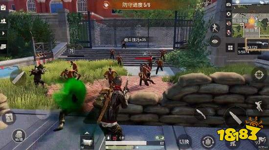 这次展示的是PVE玩法,玩家小队跟随任务指引对抗感染者。感染者翻越护网和屋顶,一波一波来袭,玩家需要尽快将它们消灭掉。