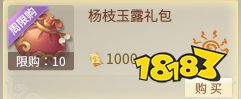 (1) 杨枝玉露礼包:内含10个杨枝玉露,价格为1000金票=10元,合算一个杨枝玉露价格为1元,每周限购10个。