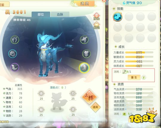 例如:法宠物的关键部位是触角、腿部和尾巴,而灵力成长加成中又以蝴蝶仙子触角和腿部,以及灵鹿的尾巴为加成最高,在一个法宠的血脉激活之后,应当更换相应位置的部件以达到灵力成长的最大化。
