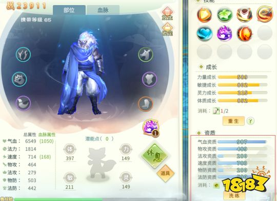 注:(1)、红色部位为血脉技能升级需求成长加成最高的,也就是关键部位,造灵时应当放在主要位置。