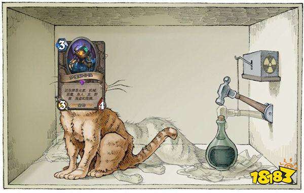 “假设有一个还剩两血的梦魇融合怪,然后我使用一张腐化先知,融合怪即是鱼人,又属于其他种族也就是非鱼人,这样梦魇融合怪有可能会死,也可能不会,就构成了薛定谔的梦魇融合怪”。