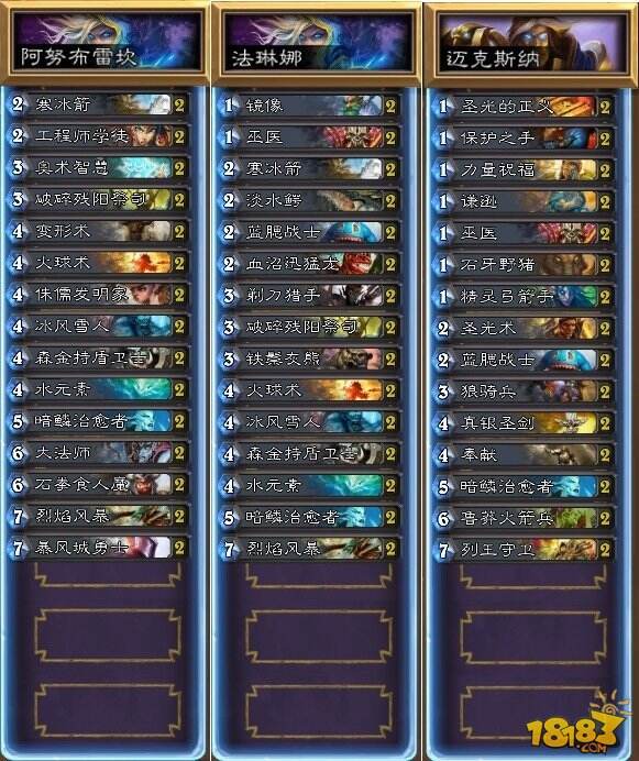 上面的通关牌组不是唯一,当然如果你冲了钱,牌比较多就更没有问题。上面的只是给没有充值只有基本牌的玩家一个参考。而在你解锁所有纳克萨玛斯30张单卡后,你基本上已经学的差不多了,至少你现在能组出几套看起来还行的牌组,也有了些传说卡。所以之前介绍的9套基础牌卡组,就可以进行些变换,最简单的变化就是加入下面几张牌: