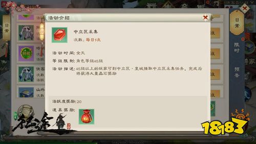奖励包含了大量的晶石、经验和活跃度奖励,并且还会额外为少侠所在的家族增加资金和贡献度。