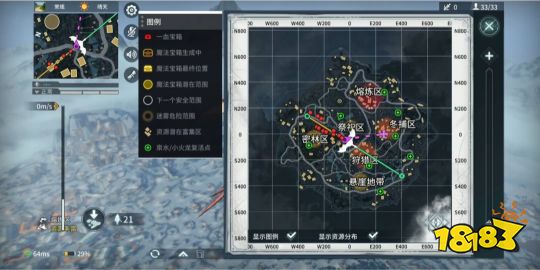 选择落地点时,地图上主要资源区的资源丰缺状况都有直接的标志,而资源富集区相对竞争大,而资源稀少的野外敌人较少,可以轻松地发育。猎手们是选择硬刚还是猥琐发育?全由自己决定。