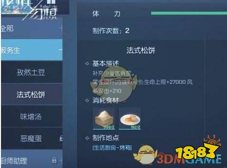 在[厨房]页面的左侧选择“香蕉椰奶”,准备好需要的食材,点击右下角的加工,即可完成。