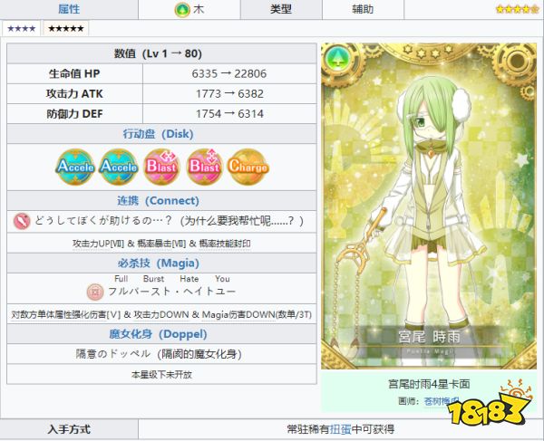 在魔法纪录魔法少女小圆外传中有着各式各样的角色,宫尾时雨是游戏中的一位四星角色,隶属于Neo-Magius,警戒心强的魔法少女。下面小编就为大家带来相关介绍,一起来看看吧!