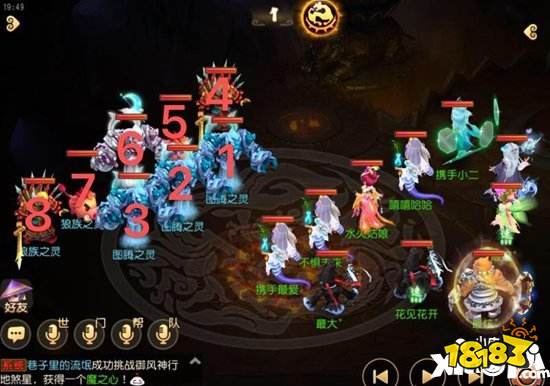 后排4号5号7号8号是狮驼,4号8号九头虫造型的伤害高,所以方寸要优先封印一个。定身封,失心会平砍,平砍伤害也是很高的。
