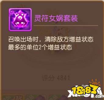 灵符女娲的装备套装效果是召唤出场时,清楚地方增益状态最多的单位2个增益状态。做首发宠套装效果就一点意义都没有啦。