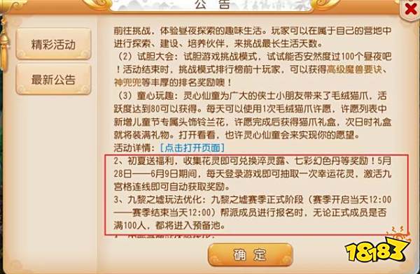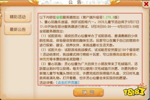 即将迎来一年一度的儿童节,游戏内也上线了相关的活动与玩法,玩家可以在试胆游戏中体验昼夜探索、建设、培养伙伴的趣味生活,来挑战最长的生活天数。有了一定的生存经验后,也可以挑战试胆大会的排名模式,当活动结束时,如果在挑战模式中排行榜达到排前十名,还可以获得高级魔兽要诀、神兜兜等丰厚排名奖励!同时,在每天活跃度达到80后还可以获得毛绒猫爪道具,每天可以使用1次毛绒猫爪许愿,完成后可以获得猫爪礼盒,在次日礼盒中将会装满礼物,打开后也许就会实现你的愿望,各位小伙伴可千万不要忘记每日的许愿哦。