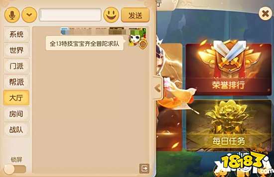 如果自身条件较好,可以在大厅喊话求组队: