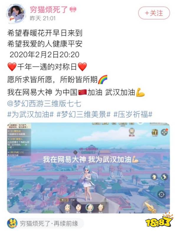 为了抗疫,还请大家“罩”顾好自己,睡睡平安,闲来读万卷书,来三界行万里路。疫情会过去,春暖花开的日子总会来到。《梦幻西游三维版》在此祝愿天下有情人终成眷属,少侠阖家幸福安康!