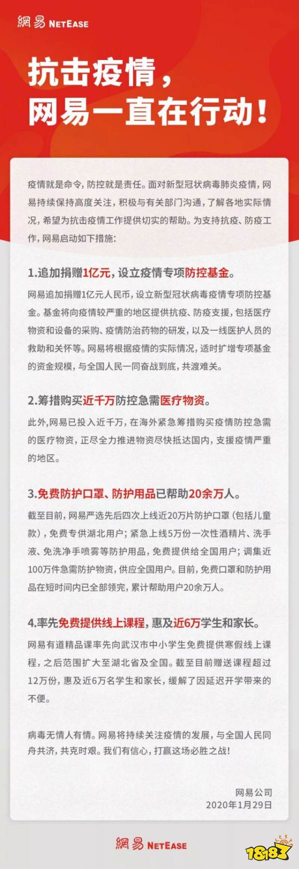 抗击疫情,网易一直在行动!用最切实的行动支援。