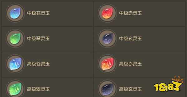 灵玉可以分四种,苍、赤、翠、玄,分别对应不同属性。