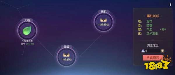 点开灵玉界面,能看到有三个“镶嵌口”,即星位,分别是60级解锁的天枢、70级解锁的天璇以及80级解锁的天玑。