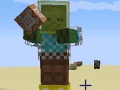 这个僵尸手拿指令方块,穿金鞋子,皮裤子,链子装甲和玻璃头。怪物的背包有5个空间,分别是:手拿物品,鞋子,裤子,上衣和头盔。如果在这5个空间放方块的话,只有头和手拿物品可以显示,其他的不会显示。
