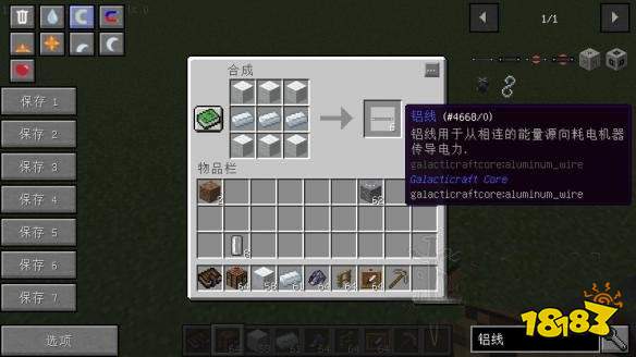 星系的导线用铝制作,6个羊毛和3个铝锭可以做6个铝线。