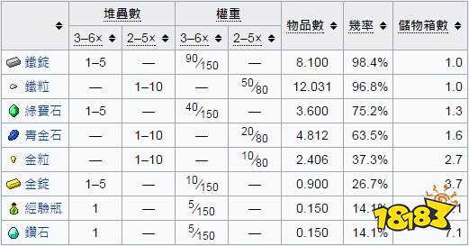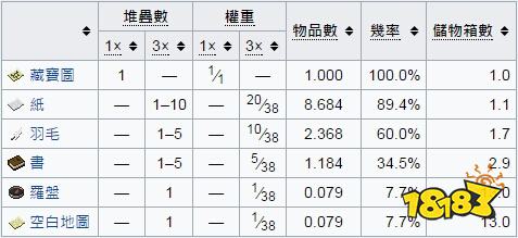 每个沉船补给储物箱都含有3–10叠物品,分布情况如下: