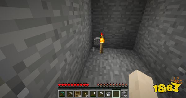 另外丰字形挖矿还有一个优势,那就是可以在墙上挖个洞,在洞上插上火把,火把可以节省火把,又能照到两边的矿道。