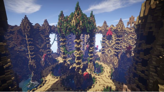 从远处看的话会发现城市中心的圣所其实是一棵完整的树木长成的。