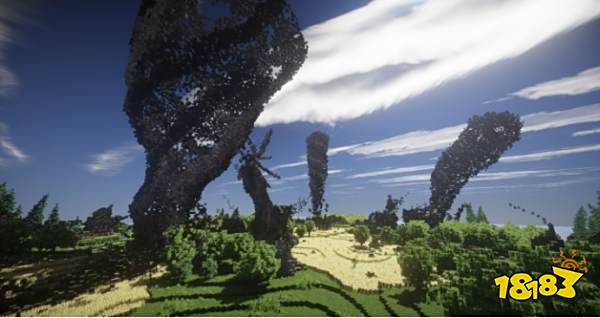最近号称台风之王的“山竹”可以说是掀起了不小的风波,这个号称十七级的飓风来袭着实给沿途的城市带来了不小的损失,所以就有人在《我的世界》里也复原出了现实中飓风的样子,我们不妨来看看是什么样的。