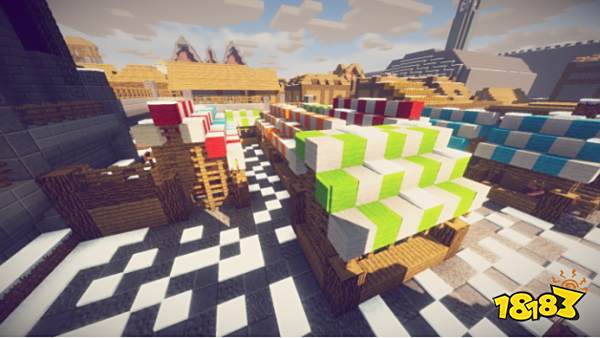 城中的商铺仅仅用简单的羊毛进行了装饰,风格简约却不简单,五彩的房顶让城市变得更加具有生活气息。
