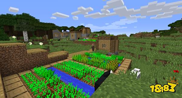 如果你足够幸运,出生点旁边就是一个村庄,不仅这里有很多现有的房子,还会有大量的小麦、胡萝卜、马铃薯和甜菜根,你就完全不愁吃的和住的啦!