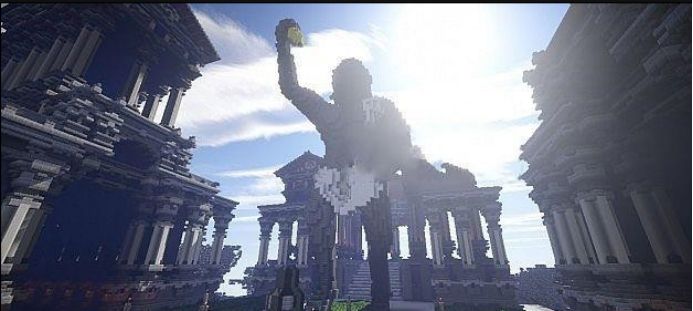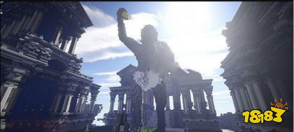 第一个作品叫做《宙斯的愤怒》,作者是Pandoras_Blocks,宙斯就是图中的巨大雕像。整个作品都是按照古希腊的建筑风格进行搭建的,中间那个巨大雕像也显得格外威严,气势非凡。