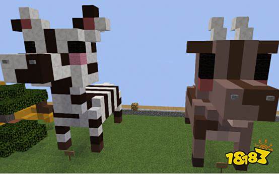 这位玩家明显点满了制作动物的技能,它做的斑马和羚羊非常具有卡通色彩,仅仅是它们脸上的红晕就显得非常可爱了。