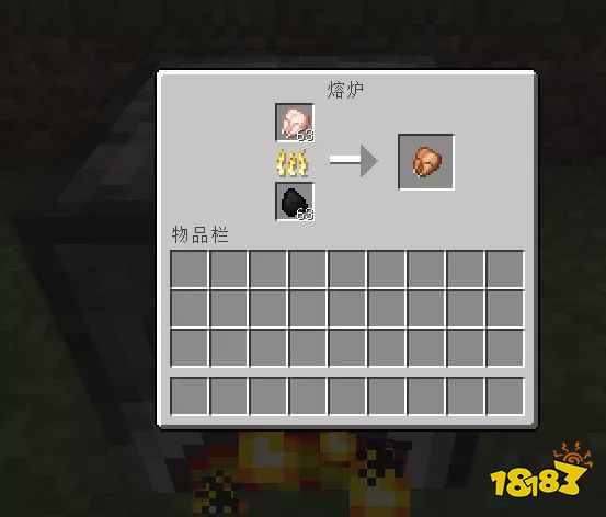 在熔炉中放置燃料和生肉进行烹饪,等待即可获得熟肉。