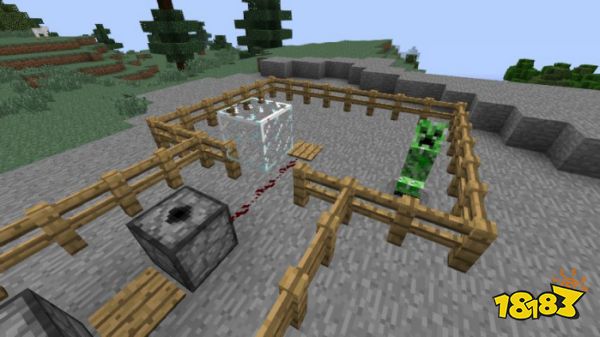 首先是第一部分,一只苦力怕在有限的空地上走来走去,但这只是我们引爆TNT的第一步,只要苦力怕“一不小心”踩到了压力板,就会激发红石连接的发射器,向天空发射出一支穿云箭。