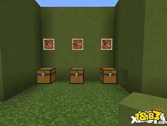 1、在屋子里放置一些物品展示框(至少三个)在物品展示框中放置自己喜欢的物品,小官微放置了一把闪亮亮的铁剑。然后将放置物品展示框的墙壁拆掉,在物品展示框的方块后面放置一个背朝物品展示框的红石比较器。