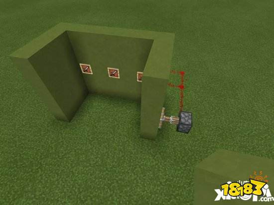 4、将最靠近物品展示框并在地下的红石粉与其他物品展示框系统的红石连接在一起。并将红石线路连接到你想放置密道的地方。