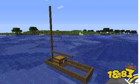 来到工作台前,用五个木板和锹即可合成一个简易的船,船的颜色取决于木板的颜色。