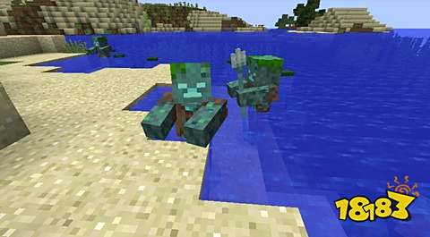 水鬼生成时有概率会持有钓鱼竿或三叉戟。它们也会有非常小的几率生成为水鬼鸡骑士,即使是普通的僵尸溺水,也有概率会转化为水鬼鸡骑士,大家撸珊瑚的时候一定要格外小心哦。