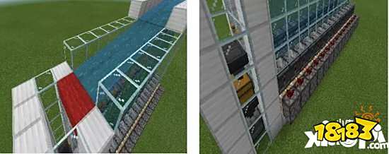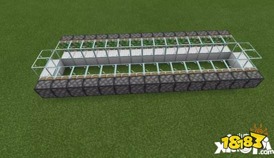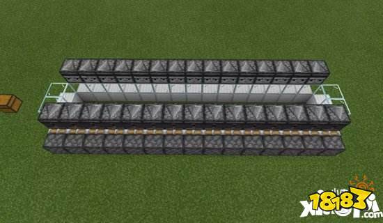 2、在第一层的基础上在垒高一层,再在长边处放上黏性活塞,这边用玻璃比较好,我们在建造的过程中比较方便观察。