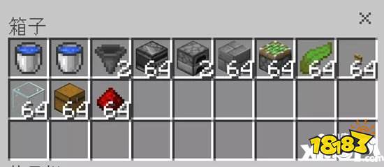 水桶、玻璃、观察者、红石粉、漏斗、黏性活塞、海带、按钮、箱子、任意实体方块
