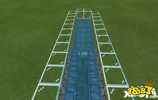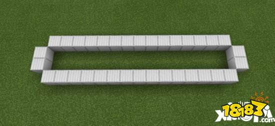 1、先建造一个长15格、宽2格的长方形水池底部,用铁块的目的是为了让大家看的比较清楚。