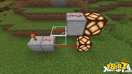 还有一个小知识,在遇到不透明的方块时只能向上传输红石信号,而如果是透明方块,可上下都传输信号。