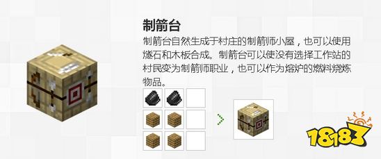 在拥有制箭师的村庄里,我们可以在制箭师家里找到对应的方块道具,我们也可以在无业村民的旁边放置一个制箭台,将无业村民转职成制箭师。