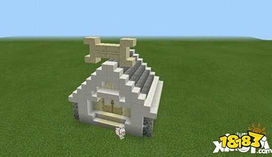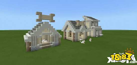 3.大部分工作已经完工,为了美观性,我们可以在屋顶建一个骨头的形状,这样就可以远远看到是狗屋了。