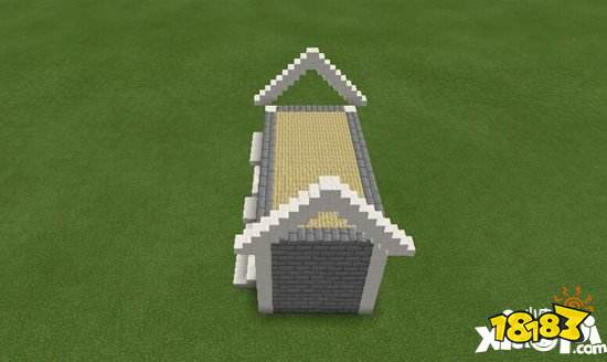 14.前方搭建花坛和屋顶烟囱。